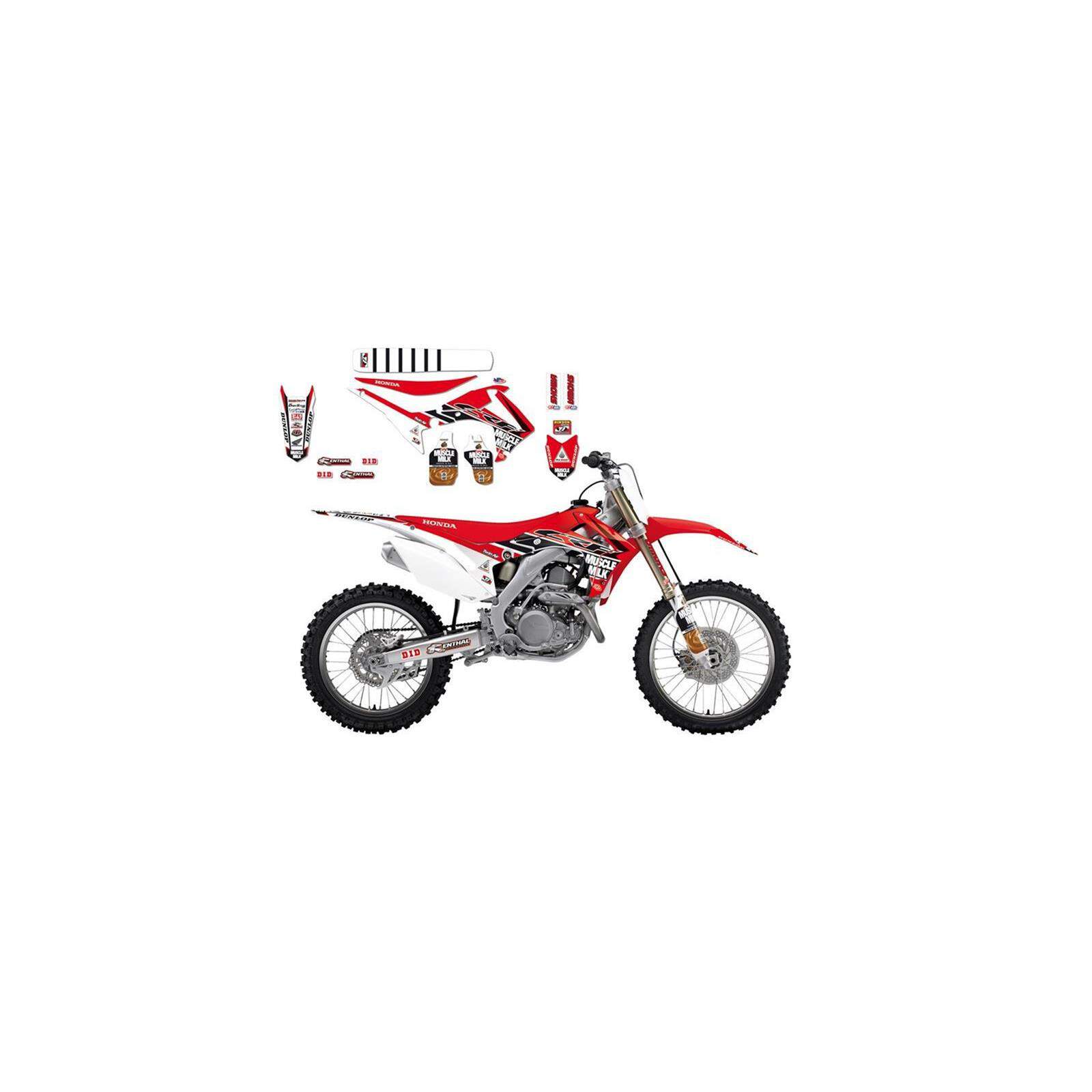 Aufkleberset Replica Muscle Milk Honda TJ 2014 Honda CRF 250 14-15 / 450 13-16 inkl. Sitzbankbezug ohne Nummerntafeln, wie abgebildet.