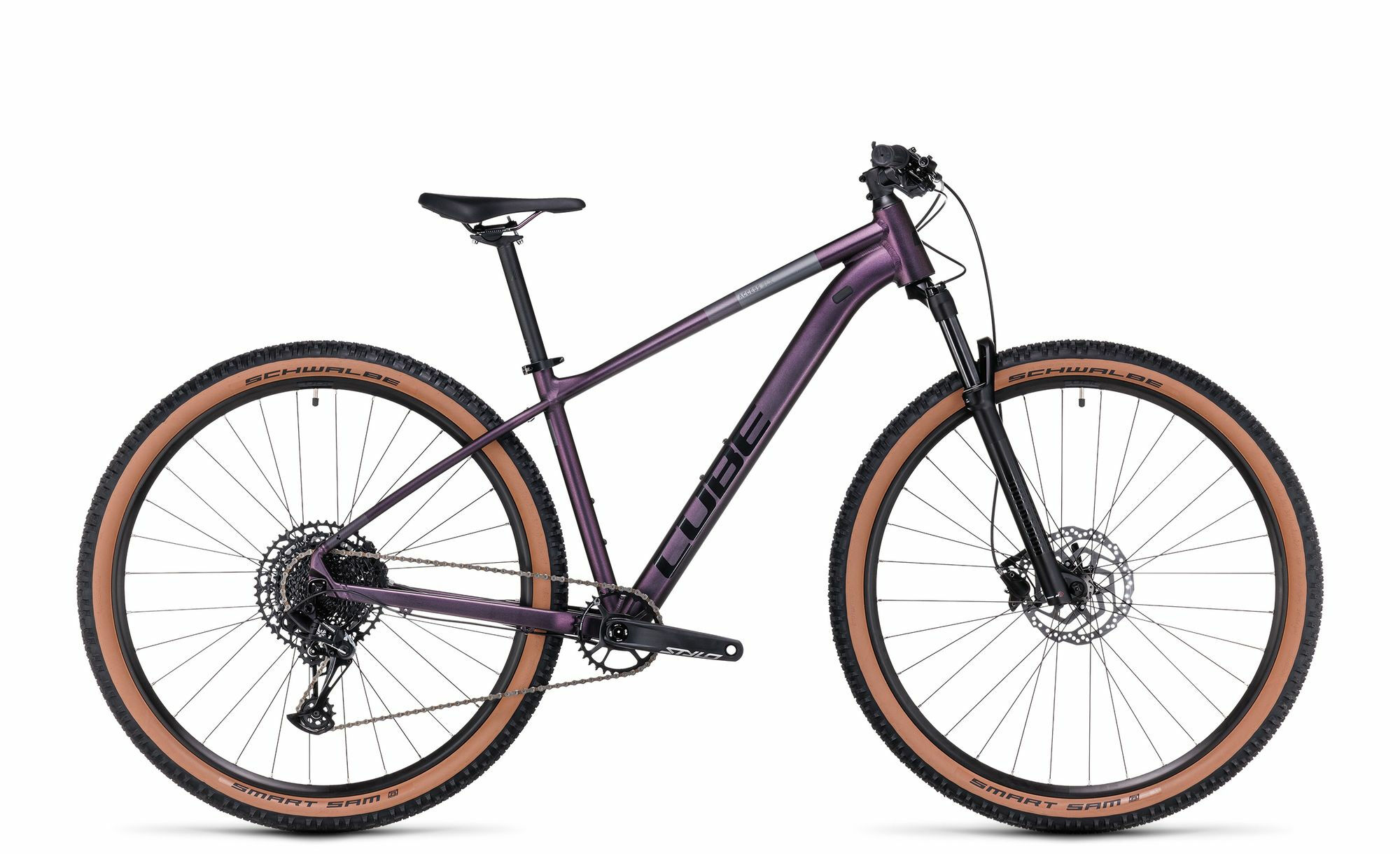 Laufradgroesse hinten: 27,5 | Gabelhersteller: RockShox | Rahmenform: Diamant | Lieferhinweis: Etwaiges dargestelltes loses Zubehoer ist nicht im Lieferumfang enthalten. | Rahmenmaterial: Aluminium | Bremssystem: Scheibenbremse | Federung: luftgefedert | Schaltungstyp: Kettenschaltung | Bremsscheibe vorne (mm): 180 | Laufradgroesse vorne : 27,5 | Bremsscheibe hinten (mm): 160 | Ganganzahl: 12 | Modelljahr: 2023 | Schaltungshersteller: SRAM | Federweg (mm): 100 | Maximales Gesamtgewicht (kg): 115 | Rahmengroesse: S | Sattelstuetze: CUBE Performance Post, 27.2mm | Kette: Sram SX Eagle™ | Schalthebel: Sram NX Eagle™ Trigger | Farbe: Violett | Griffe: ACID React | Pedale: ACID PP MTB | Steuersatz: CUBE FPH868, Semi-Integrated | Lenker: CUBE Rise Trail Bar, 680mm | Felgen: CUBE ZX20, 32H, Disc | Sattelklemmung: CUBE Varioclose, 31.8mm | Bremse hinten: Shimano BR-MT200/UR300, Hydr, Disc Brake, PM/FM 160 | Reifen: Schwalbe Smart Sam, Active, 2.25 | Naben hinten: Shimano Deore FH-M6000 ,QR, Centerlock | Gabel: RockShox Judy Silver TK Air, 100mm, PopLoc | Hersteller Farbe: shiftpurple´n´black | Kurbelsatz: Sram Stylo Eagle™ DUB, 32T, 170mm | Bremse: Shimano BR-MT200/UR300, Hydr, Disc Brake, PM/FM (180/160) | Sattel: Natural Fit Venec Lite WS | Gewicht ca. (kg): 13.5 | Schaltung: Sram NX Eagle™, 12-Speed | Kassette: Sram PG-1210 Eagle™, 11-50T | Bremse vorne: Shimano BR-MT200/UR300, Hydr, Disc Brake, PM/FM 180 | Vorbau: CUBE Performance Stem SLX, 31.8mm | Naben vorne: Shimano Deore HB-M6000, QR, Centerlock
