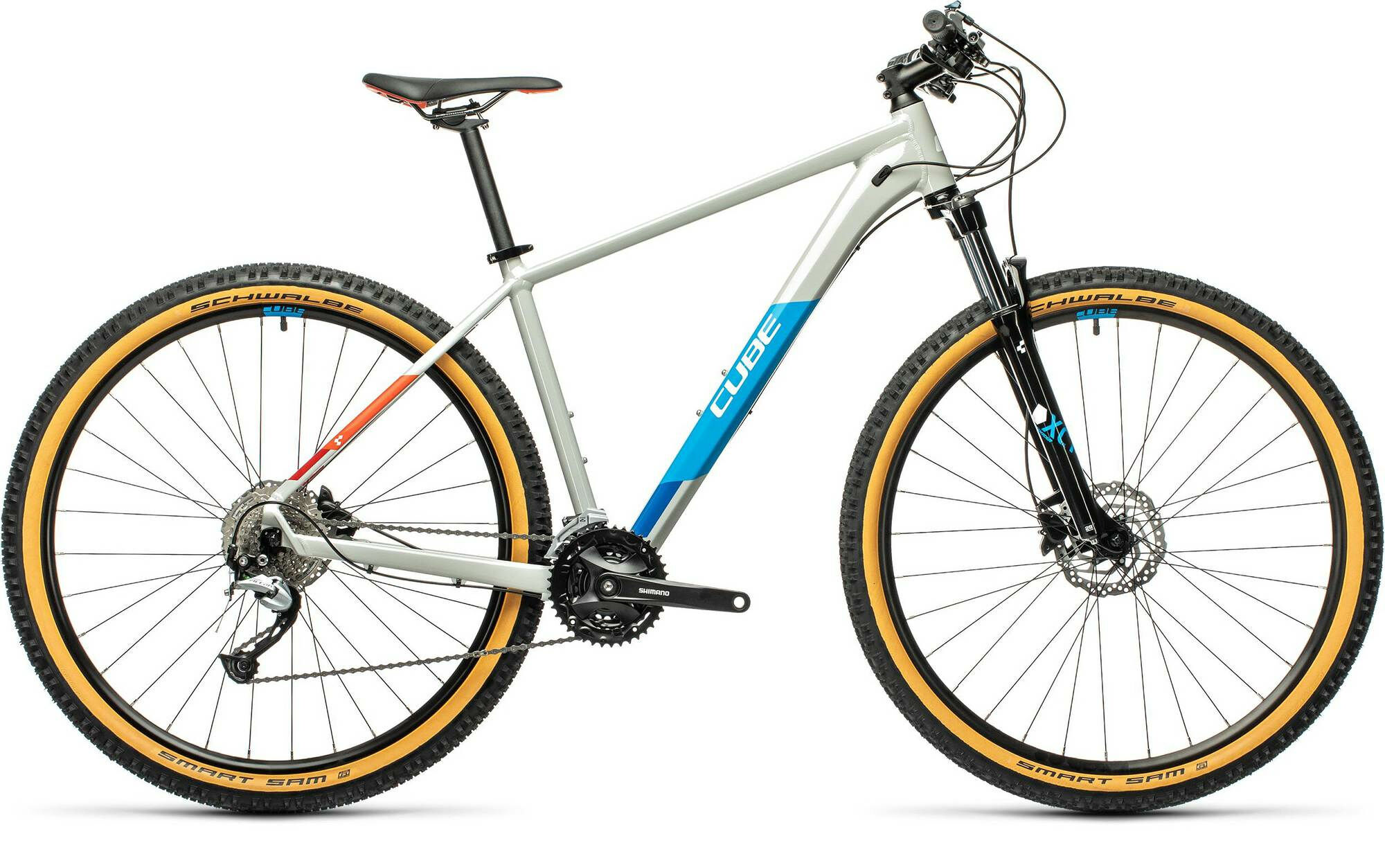 Rahmenform: Diamant | Lieferhinweis: Etwaiges dargestelltes loses Zubehör ist nicht im Lieferumfang enthalten. | Rahmenmaterial: Aluminium | Bremssystem: Scheibenbremse | Schaltungstyp: Kettenschaltung | Gabelhersteller: SR Suntour | Farbe: Grau | Laufradgröße vorne : 29 | Schaltungshersteller: Shimano | Bremsscheibe vorne (mm): 160 | Federung: stahlgefedert | Pedale: CUBE PP MTB | Naben vorne: Shimano HB-TX505, QR, Centerlock | Kurbelsatz: Shimano FC-MT101, 40x30x22T, 175mm | Kette: KMC X9 | Kassette: Shimano CS-HG201-9, 11-36T | Gewicht ca. (kg): 14.4 | Umwerfer: Shimano FD-M3000, Top Swing, 31.8mm Clamp | Schaltung: Shimano RD-M3100, 9-Speed | Maximales Gesamtgewicht (kg): 115 | Steuersatz: CUBE FPH863, Semi-Integrated | Schalthebel: Shimano SL-M2010, Rapidfire-Plus | Sattel: Natural Fit Venec Lite | Naben hinten: Shimano FH-TX505, QR, Centerlock | Griffe: CUBE Performance Grip | Laufradgröße hinten: 29 | Bremse: Shimano BR-MT200, Hydr. Disc Brake (160/160) | Sattelstütze: CUBE Performance Post, 27.2mm | Felgen: CUBE ZX20, 32H, Disc | Vorbau: CUBE Performance Stem Pro, 31.8mm | Modelljahr: 2021 | Ganganzahl: 27 | Bremsscheibe hinten (mm): 160 | Sattelklemmung: CUBE Varioclose, 31.8mm | Reifen: Schwalbe Smart Sam, Active, 2.25 | Gabel: SR Suntour XCM RL Disc, 100mm, Remote Lockout | Federweg (mm): 100 | Hersteller Farbe: Grey´n´blue´n´red | Rahmengröße: XXL