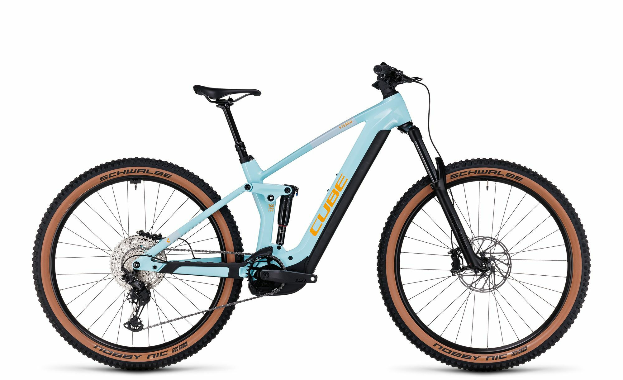 Lieferhinweis: Etwaiges dargestelltes loses Zubehoer ist nicht im Lieferumfang enthalten. | Bremssystem: Scheibenbremse | Modelljahr: 2023 | Schaltungshersteller: Shimano | Farbe: Hellblau | Laufradgroesse hinten: 27,5 | Ganganzahl: 12 | Motorleistung (Nm): 85 | Motorhersteller: Bosch | Akku-Kapazitaet (Wh): 750 | Gabelhersteller: RockShox | Rahmenform: Diamant | Rahmenmaterial: Carbon | Motorposition: Mittelmotor | Federung: luftgefedert | Schaltungstyp: Kettenschaltung | Bremsscheibe hinten (mm): 203 | Akkuposition: intube | Bremsscheibe vorne (mm): 203 | Laufradgroesse vorne : 27,5 | Federweg (mm): 150 | Maximales Gesamtgewicht (kg): 135 | Kette: Shimano CN-M6100 | Rahmengroesse: S | Vorbau: CUBE Performance Stem E-MTB, 31.8mm | Steuersatz: ACROS AZF-1035, ICR (Integrated Cable Routing), BlockLock 120°, Top Zero-Stack 1 1/2" (ZS 56mm), Bottom Zero-Stack 1 1/2" (ZS 56mm) | Motor: Bosch Drive Unit Performance CX Generation 4 (85Nm) Cruise (250Watt), Smart System | Akku: Bosch PowerTube 750 | Display: Bosch Kiox 300 | Bremse: Sram DB8, Hydr. Disc Brake (203/203) | Sattelklemmung: CUBE Screwlock Semi Integrated, 34.9mm | Hersteller Farbe: dazzle´n´orange | Sattelstuetze: CUBE Dropper Post, Handlebar Lever, Internal Cable Routing, 31.6mm | Lenker: Newmen Evolution SL 318.25, 760mm | Gabel: RockShox 35 Silver TK Air, Tapered, 15x110mm, eMTB Approved, 150mm, Lockout | Naben vorne: CUBE Engineered By Newmen, 15mm, Boost, Centerlock | Naben hinten: CUBE Engineered By Newmen, 12mm, Boost, Centerlock | Schaltung: Shimano XT RD-M8100-SGS, ShadowPlus, 12-Speed | Schalthebel: Shimano Deore SL-M6100, Rapidfire-Plus | Sattel: Natural Fit Venec | Bremse hinten: Sram DB8, Hydr. Disc Brake 203 | Bremse vorne: Sram DB8, Hydr. Disc Brake 203 | Kassette: Shimano Deore CS-M6100, 10-51T | Griffe: ACID React Pro | Reifen: Schwalbe Nobby Nic, PerfL, 2.6 | Daempfer: RockShox Deluxe Select+, 205x60mm (27.5: 185x55mm), Rebound Adjust, Trunnion Mount, Lockout; Top: 54mm Trunnion Mount, Bottom: 22.2x8mm | Kurbelsatz: ACID E-Crank, 165mm (27.5: 36T // 29: 34T) | Felgen: CUBE EX30, 32H, Disc, Tubeless Ready | Gewicht ca. (kg): 24.8
