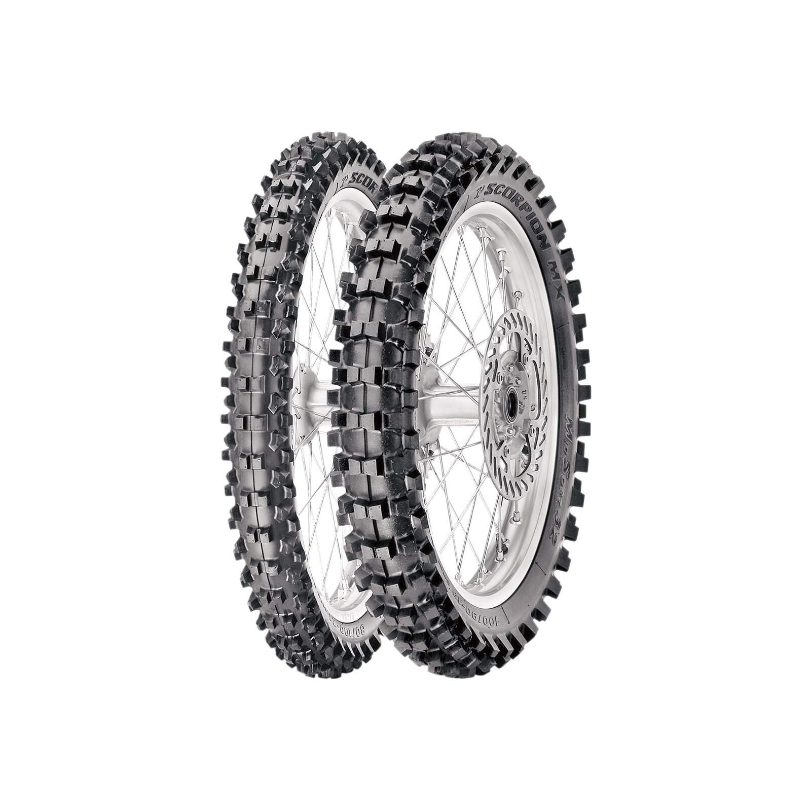 Pirelli Reifen MX 32 Scorpien 90/100-16 Scorpion MXMS MX-Reifen für weiches bis mittelhartes Terrain Leistungsstarker Reifen mit langer Lebensdauer Das direktionale Design des Vorderreifens ermöglicht ein optimales Bremsverhalten Stollen in der Mitte des Schulterbereichs sorgen für eine bessere Traktion auf weichem Terrain Präzises Lenken, besonders auf weicherem Terrain Mehr Traktion auf gerader Strecke auf vielen verschiedenen Terrains dank innovativem Hinterreifen-Design Hohe Laufleistung dank robuster Stollen Erhältlich in den Größen 120/80-19 und 90/100-21 für gängige 4-Takter Modelle Der XC MS 18″ Hinterreifen besitzt ein ähnliches Profil Der MXMS Mud Hinterreifen bietet eine optimale Traktion aus sehr weichem Terrain und ist die perfekte Wahl, wenn ein MXS ein wenig zu aggressiv ist Schlauchreifen (TT)