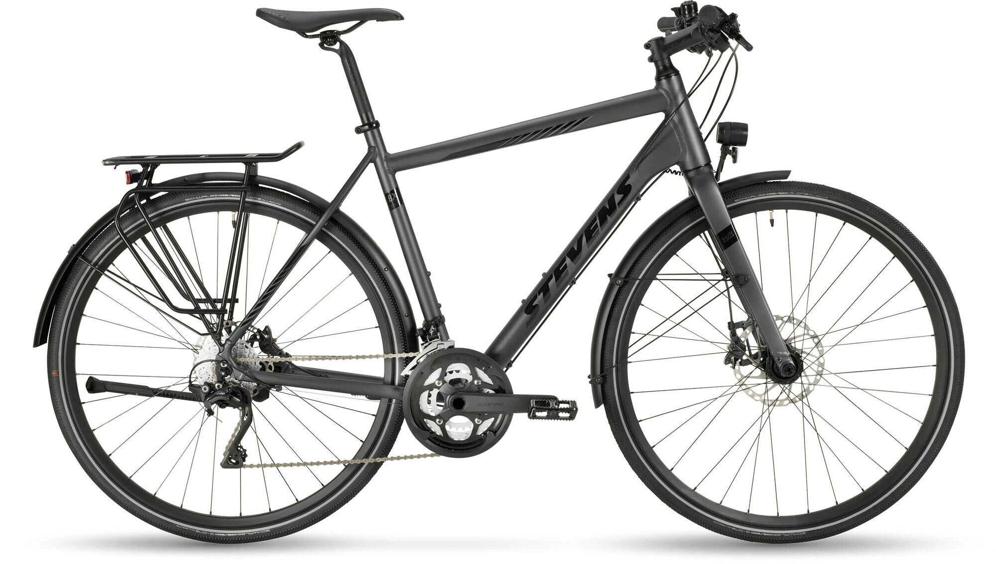 Lieferhinweis: Etwaiges dargestelltes loses Zubehoer ist nicht im Lieferumfang enthalten. | Laufradgroesse hinten: 28 | Rahmenmaterial: Aluminium | Bremsscheibe vorne (mm): 180 | Bremssystem: Scheibenbremse | Schaltungstyp: Kettenschaltung | Schaltungshersteller: Shimano | Laufradgroesse vorne : 28 | Bremsscheibe hinten (mm): 160 | Rahmenform: Diamant | Modelljahr: 2023 | Gabelhersteller: Sonstige | Federung: starr | Farbe: Grau | Ganganzahl: 30 | Maximales Gesamtgewicht (kg): 130 | Bremse: Shimano Deore XT BR-M8100 | Reifen hinten: Schwalbe G-One Allround Performance, 40-622 | Gewicht ca. (kg): 13.4 | Felgen: Oxygen RM-X21, 21 x 622 | Schaltung: Shimano Deore XT Trekking Shadow RD-T8000-SGS, 30fach | Sattelstuetze: Oxygen Scorpo | Sattel: Oxygen Havoc | Pedale: ATB Alu Comp Reflex | Naben hinten: Shimano Deore XT FH-M8000 | Umwerfer: Shimano Deore XT Trekking FD-T8000-HL3 | Gabel: STEVENS S-Lite Aluminium | Reifen vorne: Schwalbe G-One Allround Performance, 40-622 | Bremshebel: Shimano BL-T8100 | Kurbelsatz: Oxygen Scorpo, 48-38-28 Z. | Schalthebel: Shimano Deore XT Trekking SL-T8000 | Naben vorne: Shimano DH-UR708-3D | Schutzbleche: SKS Schutzbleche | Steuersatz: STEVENS AH Taper 1 1/8"-1 1/2" | Scheinwerfer: B+M Lumotec IQ-X T | Bremse hinten: Shimano Deore XT BR-M8100 | Dynamo: Shimano DH-UR708-3D | Bremse vorne: Shimano Deore XT BR-M8100 | Hersteller Farbe: Slate Grey | Vorbau: Oxygen Scorpo | Rueckleuchte: B+M Shine Evo | Rahmengroesse: 52 cm | Gepaecktraeger: Racktime Shine Evo RTA Gepaecktraeger | Staender: Pletscher Comp Staender | Lenker: Oxygen Scorpo 640 mm