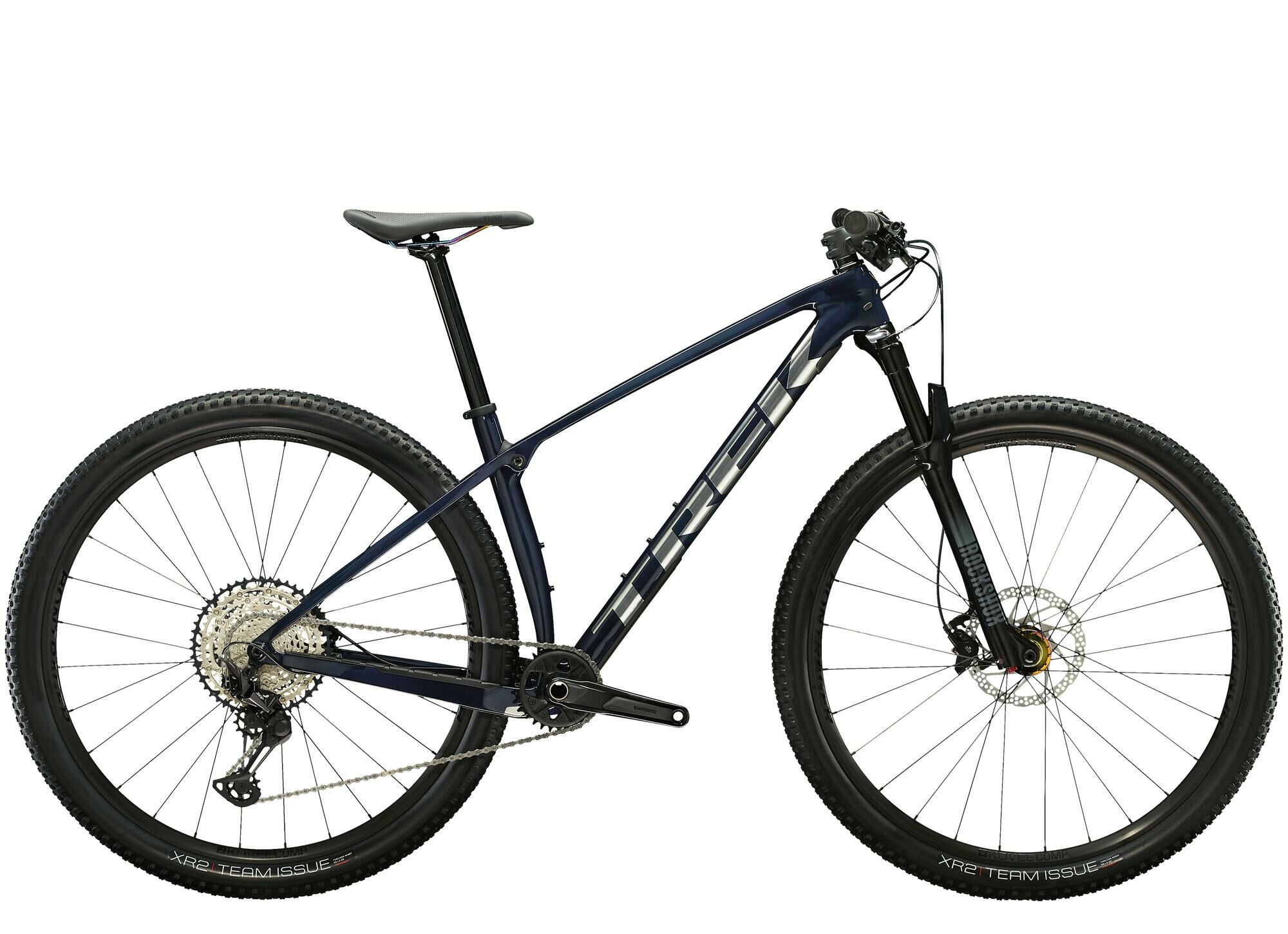 Federweg (mm): 100 | Lieferhinweis: Etwaiges dargestelltes loses Zubehoer ist nicht im Lieferumfang enthalten. | Bremsscheibe vorne (mm): 180 | Bremssystem: Scheibenbremse | Schaltungstyp: Kettenschaltung | Modelljahr: 2023 | Schaltungshersteller: Shimano | Rahmenform: Diamant | Federung: luftgefedert | Farbe: Dunkelblau | Bremsscheibe hinten (mm): 160 | Laufradgroesse hinten: 29 | Laufradgroesse vorne : 29 | Ganganzahl: 12 | Gabelhersteller: RockShox | Maximales Gesamtgewicht (kg): 136 | Rahmenmaterial: Carbon | Rahmengroesse: M/L | Felgen: Bontrager Kovee Comp 23 Tubeless Ready | Sattel: Bontrager Arvada, Streben aus CrMo-Rohr | Schaltung: Shimano SLX/XT 1×12 | Bremse: Hydraulische Scheibenbremse Shimano MT410/M4100 | Griffe: Bontrager XR Trail | Kassette: Shimano SLX M7100, 10-51 Z., 12fach | Kurbelsatz: Shimano MT611, Stahlkettenblatt (30 Z.) | Reifen: Bontrager XR2 Team Issue, 29 x 2.20 | Schalthebel: Shimano SLX M7100, 12fach | Kette: Shimano Deore M6100 | Gabel: RockShox Recon Gold RL, DebonAir-Feder, Motion Control-Daempfung, Remote-Lockout | Laufradsatz: Bontrager Kovee Comp 23, Rapid Drive 108 | Hersteller Farbe: Blue Carbon Smoke | Sattelstuetze: Bontrager Comp, 6061-Aluminium